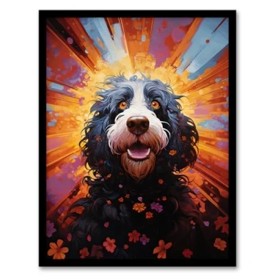 Artery8 Cocker Poo Dog Lover Gift Pet Portrait Orange Purple Blue Artwork Painting Framed Wall Art Print A4