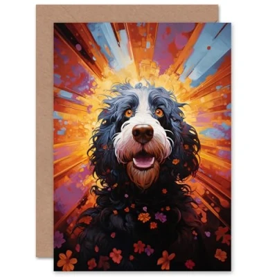 Artery8 Cocker Poo Dog Lover Gift Pet Portrait Orange Purple Blue Artwork Painting Sealed Greeting Card Plus Envelope Blank inside