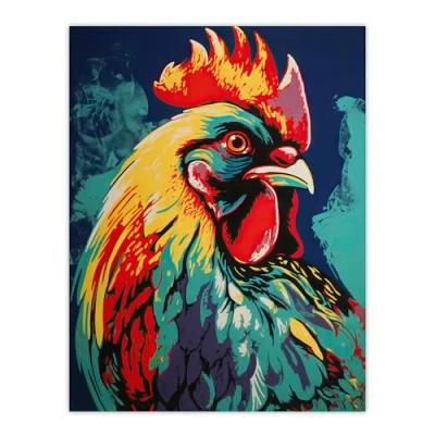 Artery8 Cockerel Rooster Chicken Hen Screenprint Red Yellow Turquoise Vibrant Bold Bright Colourful Painting Extra Large XL Wall Art Poster Print