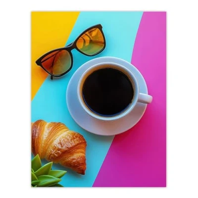 Artery8 Coffee Sunglasses Croissant Colourful Modern Kitchen Extra Large XL Wall Art Poster Print