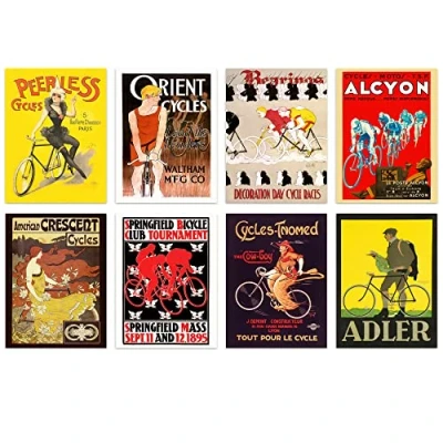 Artery8 Collection Of Vintage Cycling Bicycle Bike Adverts Set 8 Unframed Wall Art Prints Bathroom Bedroom Aesthetic French British American A4