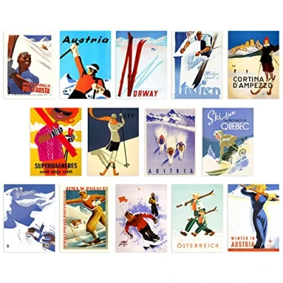 Artery8 Collection Of Vintage Winter Skiing Ski Adverts Set 14 Unframed Wall Art Prints Bathroom Bedroom Aesthetic Austria Italy France Norway A4