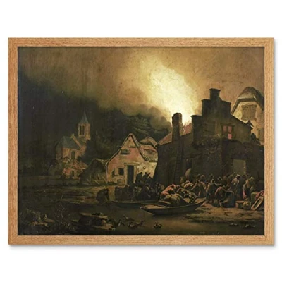 Artery8 Colonia Fire By Night In A Village Painting Art Print Framed Poster Wall Decor 12x16 inch