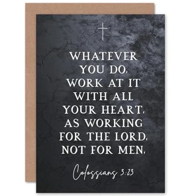 Artery8 Colossians 3:23 Whatever You Do Work At it With All Your Heart Christian Bible Verse Quote Scripture Typography Sealed Greeting Card Plus Envelope Blank inside