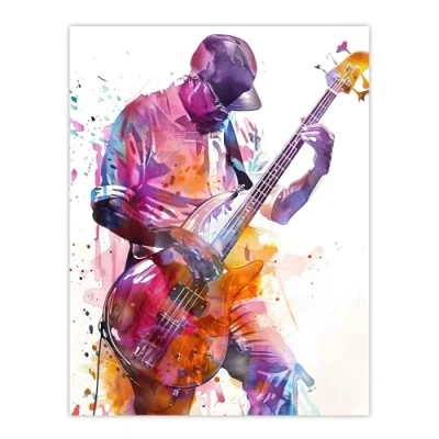 Artery8 Colourful Bassist Watercolour Musician Portrait Living Room Extra Large XL Wall Art Poster Print