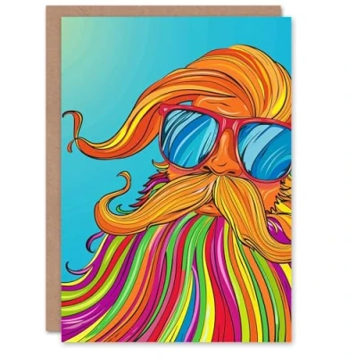 Artery8 Colourful Beard Hippie With Sunglasses Pop Art Blank For Him Or Her Birthday Card