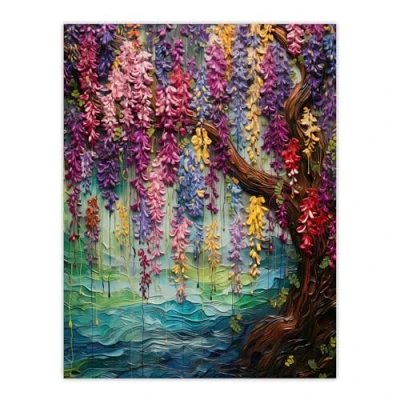 Artery8 Colourful Cascading Wisteria Over Riverbank Heavy Oil Painting Large Wall Art Poster Print Thick Paper 18X24 Inch