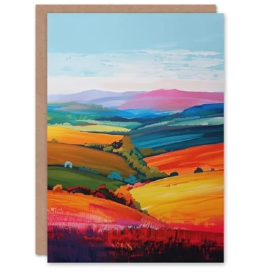 Artery8 Colourful Country Fields Rainbow Landscape Greeting Birthday Card Him Her All Blank