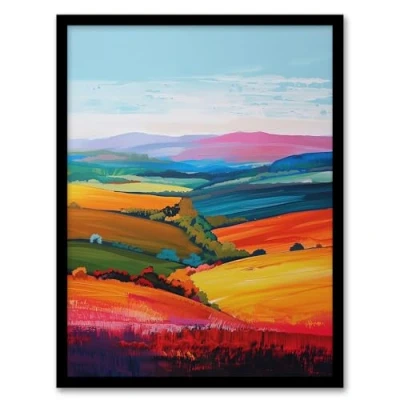 Artery8 Colourful Country Fields Rainbow Landscape Living Room Artwork Framed Wall Art Print A4