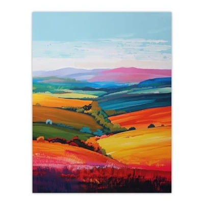 Artery8 Colourful Country Fields Rainbow Landscape Living Room Large Wall Art Poster Print Thick Paper 18X24 Inch