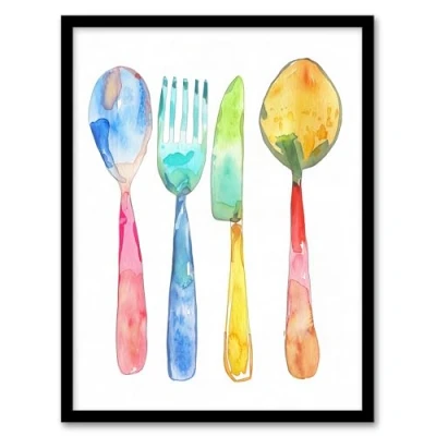 Artery8 Colourful Cutlery Fork Knife Spoon Watercolour Kitchen Artwork Framed Wall Art Print A4
