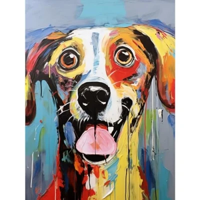 Artery8 Colourful Dog Portrait Artwork by Jason Brydson Happy Face Oil Painting Bold Bright Vibrant Extra Large XL Wall Art Poster Print