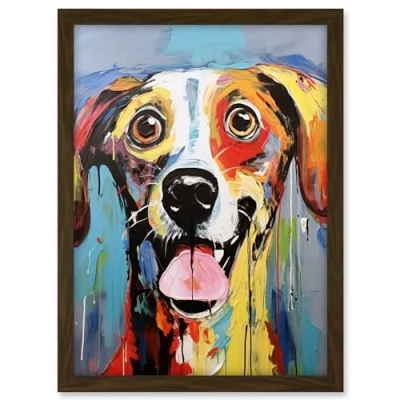 Artery8 Colourful Dog Portrait Artwork by Jason Brydson Happy Face Oil Painting Bold Bright Vibrant Framed A3 Wall Art Print