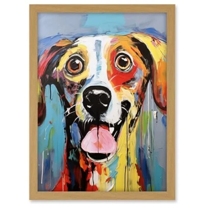 Artery8 Colourful Dog Portrait Artwork by Jason Brydson Happy Face Oil Painting Bold Bright Vibrant Framed A3 Wall Art Print