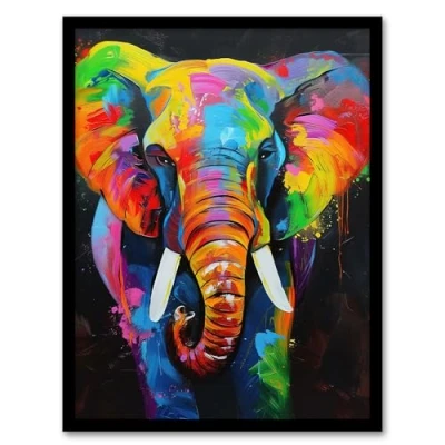 Artery8 Colourful Elephant Vibrant Psychedelic Painting Living Room Artwork Framed Wall Art Print A4