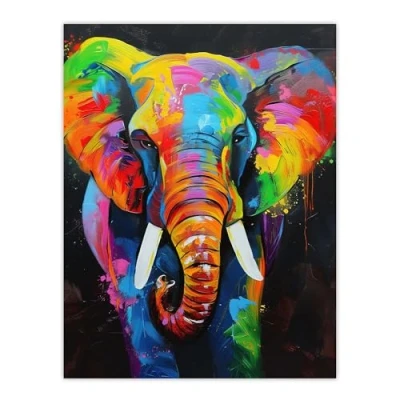 Artery8 Colourful Elephant Vibrant Psychedelic Painting Living Room Large Wall Art Poster Print Thick Paper 18X24 Inch