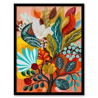 Artery8 Colourful Floral Botanical Bouquet Painting Living Room Artwork Framed Wall Art Print A4