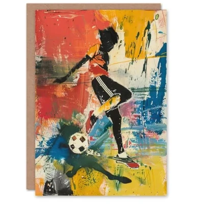 Artery8 Colourful Footballer Ball Painting Bright Bold Greeting Birthday Card Him Her All Blank