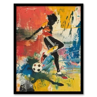 Artery8 Colourful Footballer Ball Painting Bright Bold Living Room Artwork Framed Wall Art Print A4