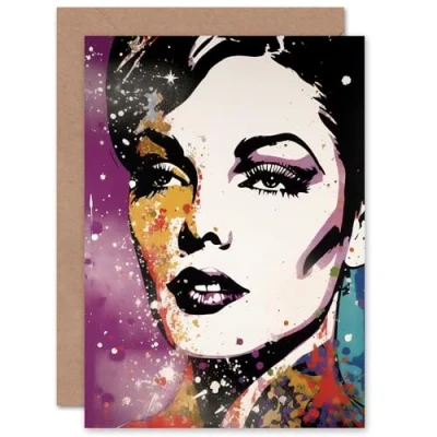Artery8 Colourful Glamour Face Woman for Wife Her Mum Sister Daughter Mom Gran Nan Birthday Thank You Congratulations Blank Art Greeting Card
