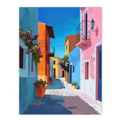 Artery8 Colourful Houses Italian Village Street Painting Bathroom Toilet Extra Large XL Wall Art Poster Print