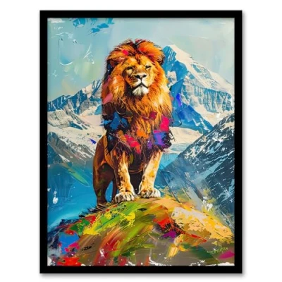 Artery8 Colourful Lion Nature Animal Lover Mountain King Living Room Artwork Framed Wall Art Print A4