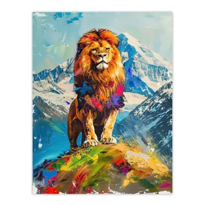 Artery8 Colourful Lion Nature Animal Lover Mountain King Living Room Extra Large XL Wall Art Poster Print