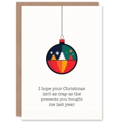 Artery8 Colourful Modern Bauble Crap Presents Joke Funny Blank For Him Or Her Art Christmas Card