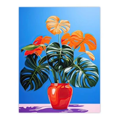 Artery8 Colourful Monstera Plant Stylised Graphic Still Life Large Wall Art Poster Print Thick Paper 18X24 Inch