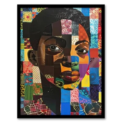 Artery8 Colourful Patchwork Black Woman Portrait Beauty Living Room Artwork Framed Wall Art Print A4
