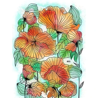 Artery8 Colourful Patterned Poppy Flower Painting Art Print Canvas Premium Wall Decor Poster Mural