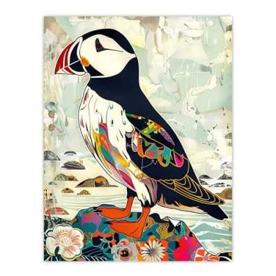 Artery8 Colourful Patterned Puffin Artwork Mosaic Floral Living Room Extra Large XL Wall Art Poster Print