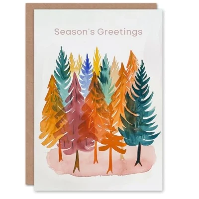Artery8 Colourful Pine Trees Bright Watercolour Painting Blank For Him Or Her Art Christmas Card