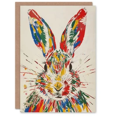 Artery8 Colourful Rabbit Portrait Bright Fun Cute Spring Greeting Birthday Card Him Her All Blank