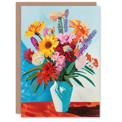 Artery8 Colourful Spring Flower Bouquet Vibrant Painting Greeting Birthday Card Him Her All Blank