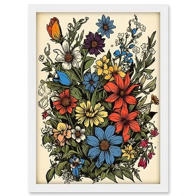 Artery8 Colourful Wildflower Meadow Tattoo Ink Body Art Rockabilly Americana 50s Artwork Framed A3 Wall Print