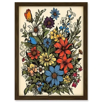Artery8 Colourful Wildflower Meadow Tattoo Ink Body Art Rockabilly Americana 50s Artwork Framed A3 Wall Print