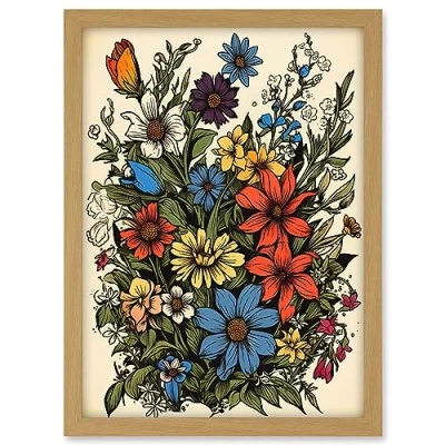 Artery8 Colourful Wildflower Meadow Tattoo Ink Body Art Rockabilly Americana 50s Artwork Framed A3 Wall Print