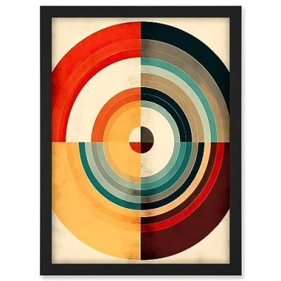 Artery8 Concentric Circles Bauhaus Style Minimal Colourful Vintage Artwork Framed A3 Wall Art Print
