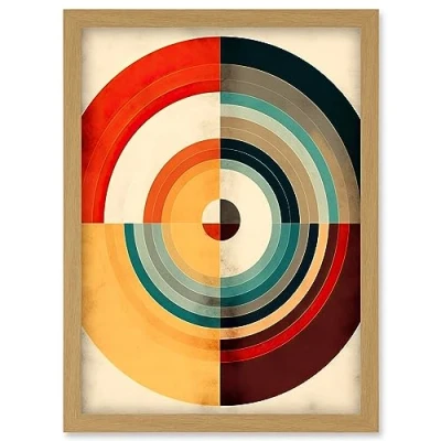 Artery8 Concentric Circles Bauhaus Style Minimal Colourful Vintage Artwork Framed Wall Art Print A4