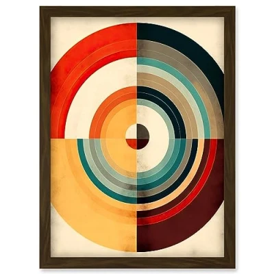 Artery8 Concentric Circles Bauhaus Style Minimal Colourful Vintage Artwork Framed Wall Art Print A4