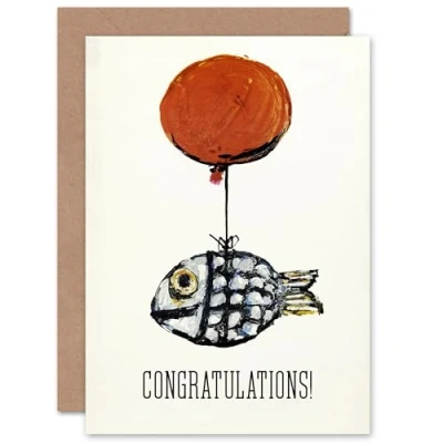 Artery8 Congratulations Abstract Oil Painting Balloon Fish Fun For Him Her Blank Inside Greeting Card