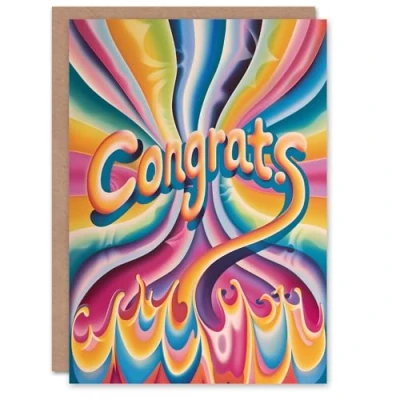 Artery8 Congratulations Card Fun Rainbow Trippy Congrats Hippy Retro Psychedelic For Him Her Man Woman Girl Boy Wife Husband Greeting
