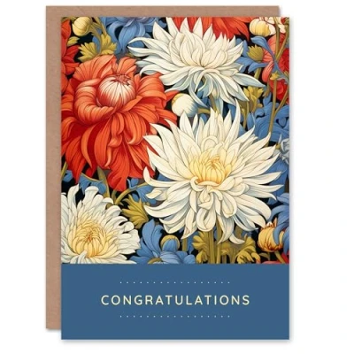Artery8 Congratulations Greeting Card Chrysanthemum Flower Pattern For Her
