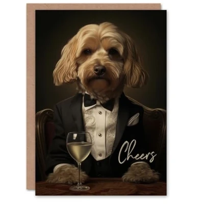 Artery8 Congratulations Greeting Card Classy Tuxedo Dog Lover Cheers Wine For Him Her
