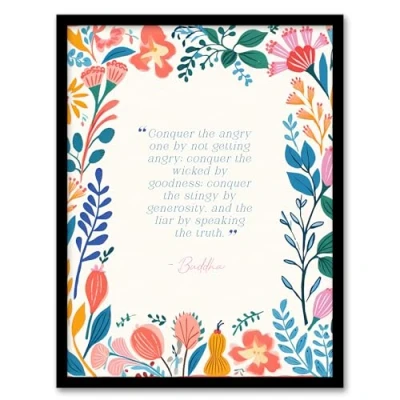 Artery8 Conquer The Angry Buddhist Mindfulness Quote Floral Buddha Meditation Enlightenment Vihara Artwork Framed Wall Art Print A4