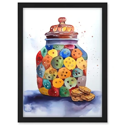 Artery8 Cookie Jar Folk Art Watercolour Painting Artwork Framed A3 Wall Print