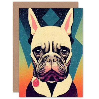 Artery8 Cool Dog Bulldog for Him or Her Man Woman Birthday Thank You Congratulations Blank Art Greeting Card