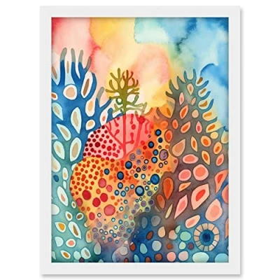 Artery8 Coral Reef Folk Art Watercolour Painting Artwork Framed A3 Wall Print