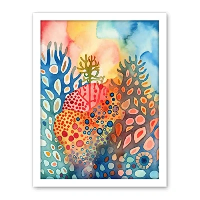 Artery8 Coral Reef Folk Art Watercolour Painting Artwork Framed Wall Print 18X24 Inch